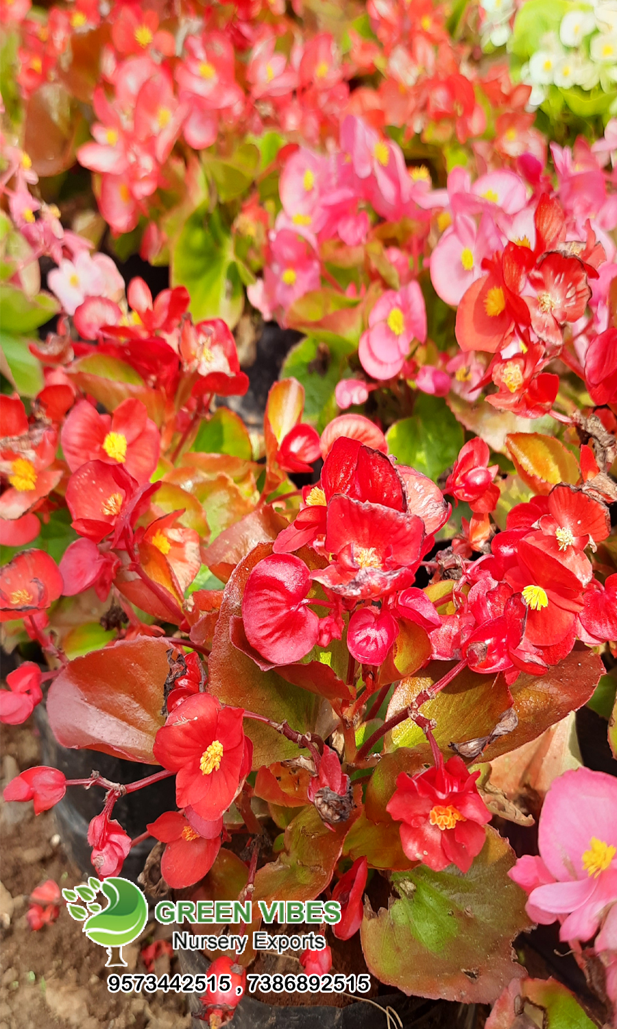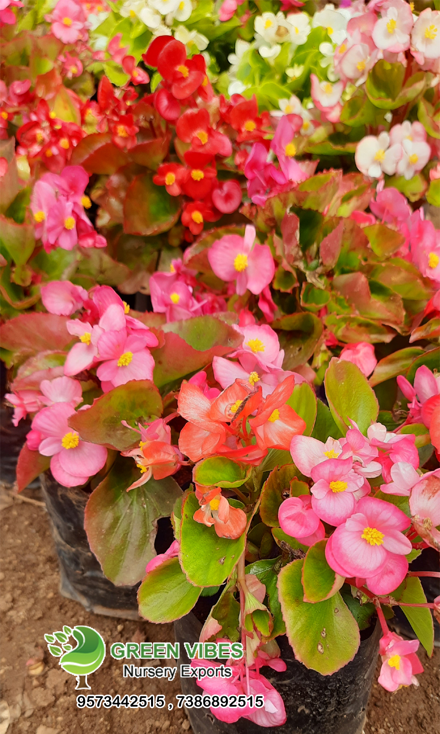 Begonia plants are known for their showy blooms that can last for weeks or even months.Flower colours are pink,red,yellow or white.