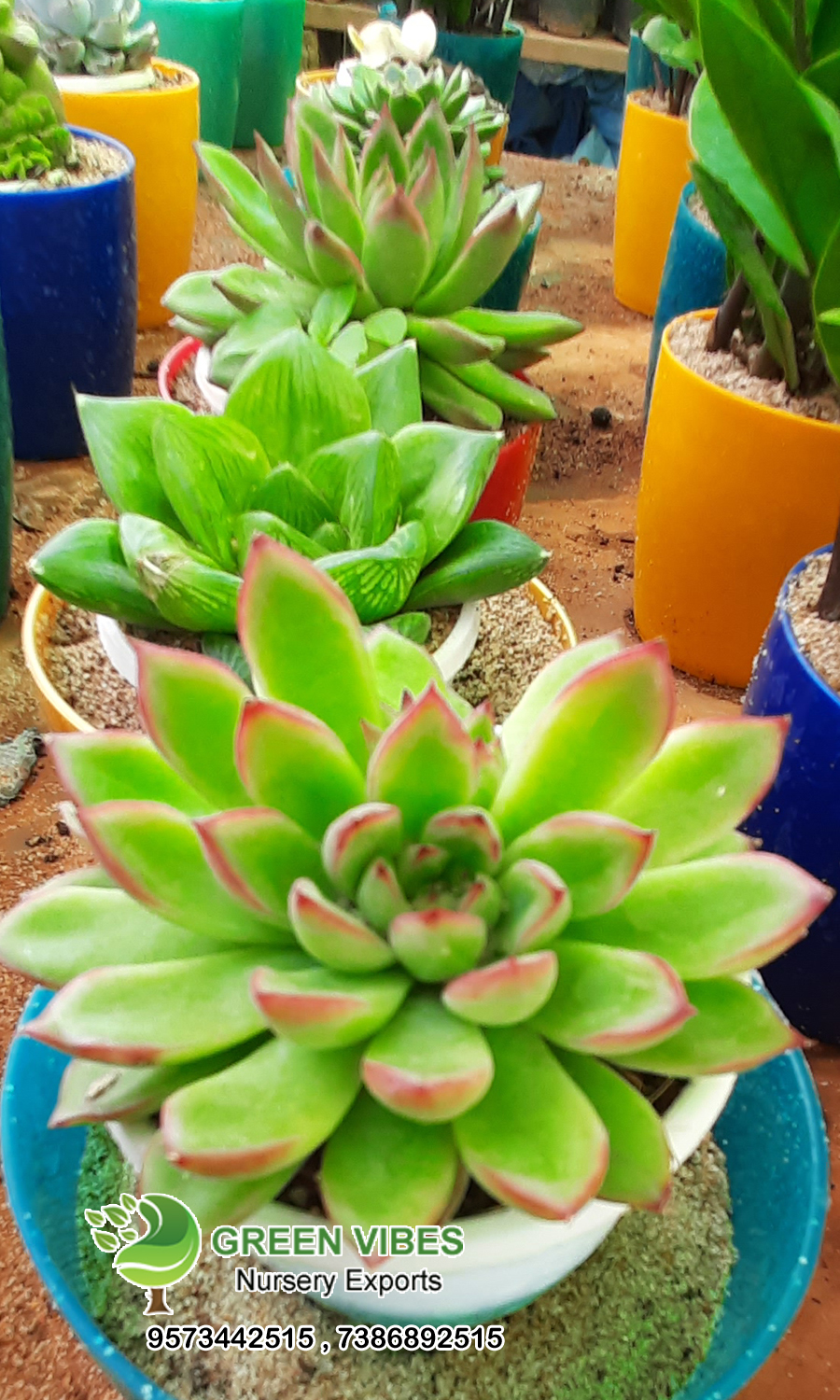 Echeveria Agavoides 'Prolifera' is an attractive succulent plant that forms tight, stemless rosettes of fleshy apple-green leaves with a reddish-pink tinge near the edges and a darker red terminal spine.