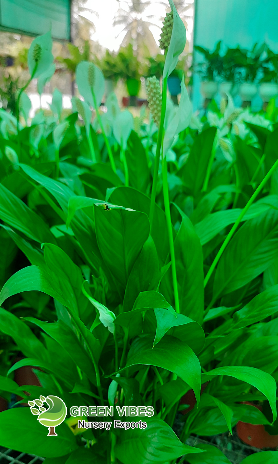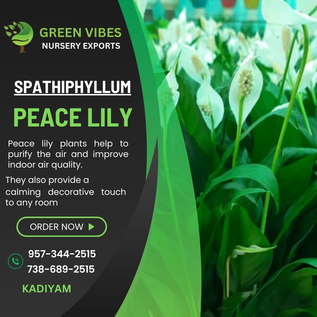 Spathiphyllum (Peace Lily) with its elegant white blooms and lush green foliage.Peace lily plants help to purify the air and improve indoor air quality. They also provide a calming, decorative touch to any room.